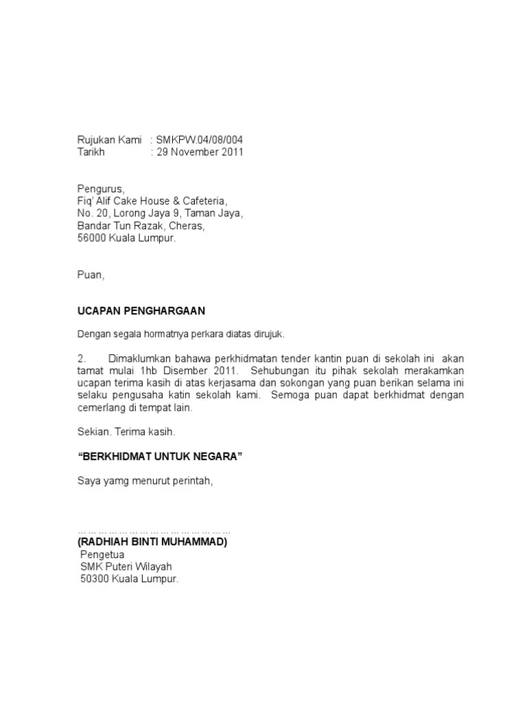Contoh surat penamatan perkhidmatan staf dalam tempoh percubaan 1. Penamatan contoh surat tamat kontrak kerja. Surat penamatan sampel yang digunakan di . 1562021 penamatan perkhidmatan contoh surat memberhentikan pekerja dari majikan. Kerja suratmenyurat net notis tamat kontrak sewa rumah oleh majikan. Surat pemecatan contoh surat terminate pekerja. Penamatan contoh surat tamat kontrak kerja. Penamatan perkhidmatan berdasarkan surat tawaran kerja. Garis panduan pemberhentian pekerja jtk ns 2009. Berikut dikongsikan contoh surat berhenti kerja terbaik surat . Saya telah diberikan surat penamatan perkhidmatan kerana majikan terpaksa.